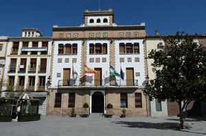 C, mun. y p. j. de la prov. de Granada. 579 m de alt. 38, 2 km2. 14.986 h. (2018). SANTA FE Bandera Escudo Fachada del Ayuntamiento de Santa Fe. Lema: _"Cuna de la Hispanidad ...